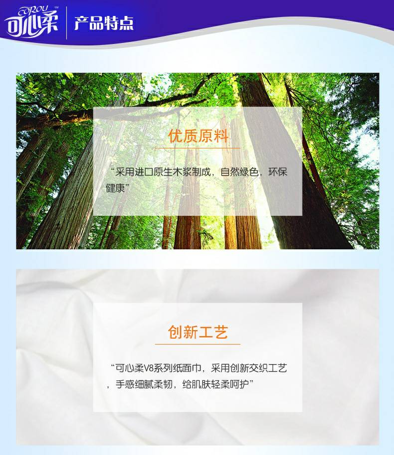 可心柔 V8系列CoRou云柔系列白色木浆40抽